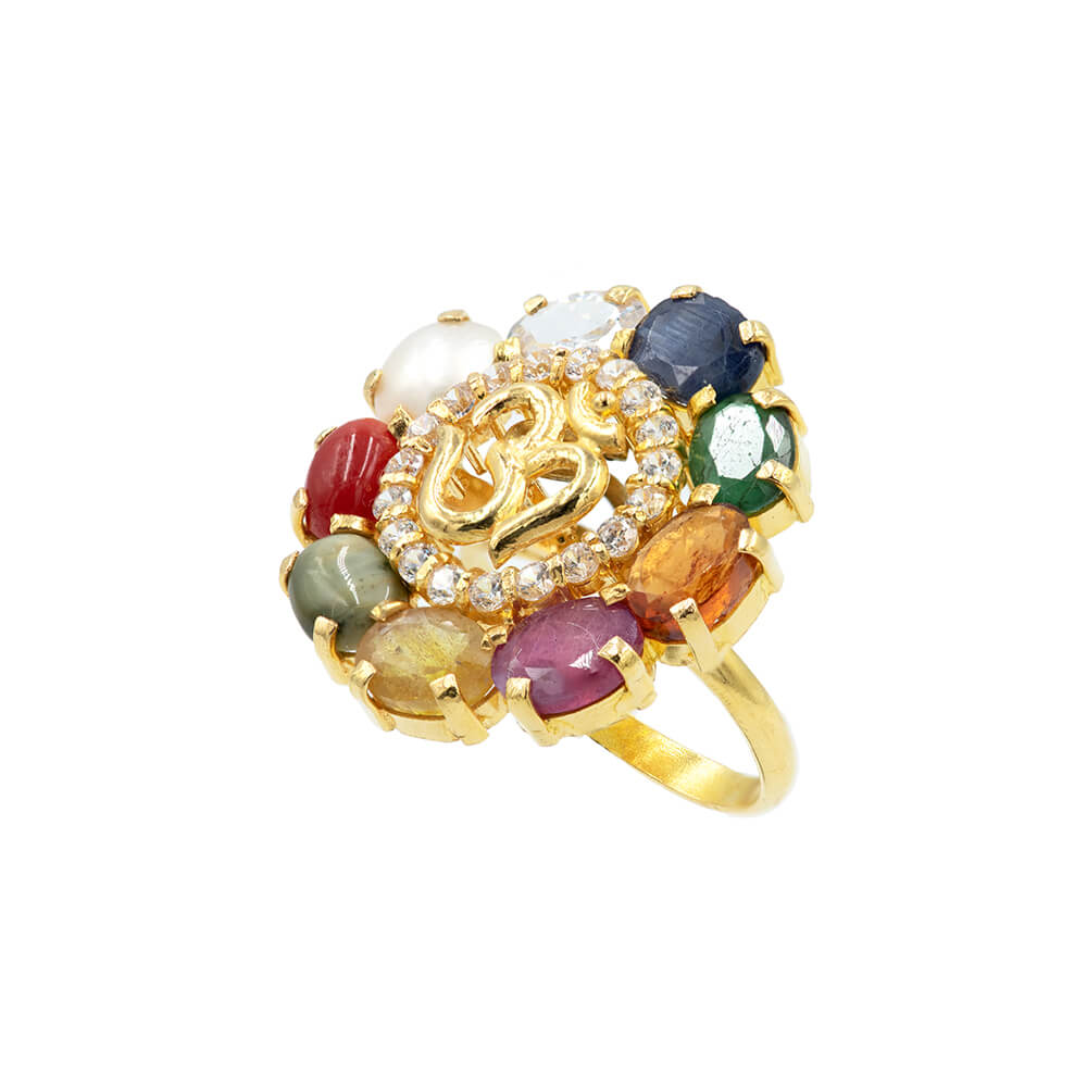A beautifully crafted Nawaratna stone ring featuring nine auspicious gemstones, perfect for elegance and tradition.