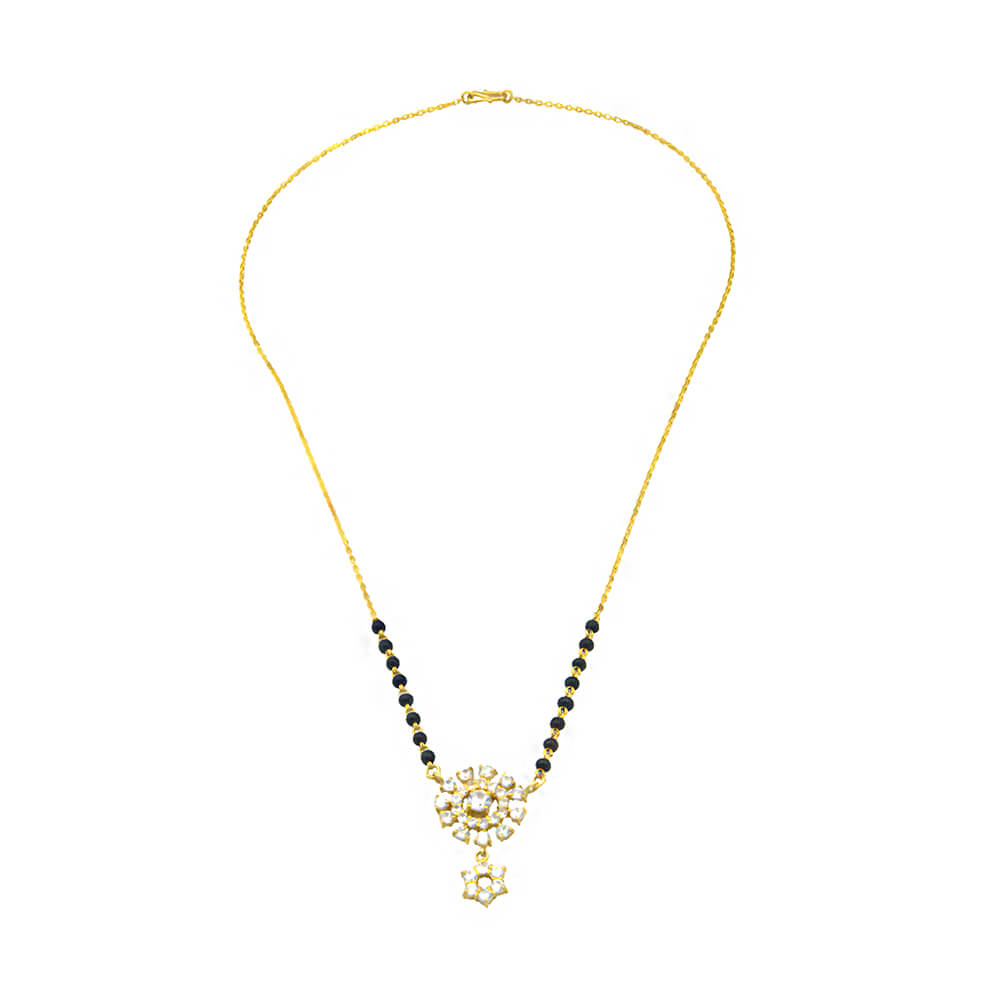 A stunning stone mangalsutra with a sleek gold-plated pendant, perfect for modern everyday elegance.